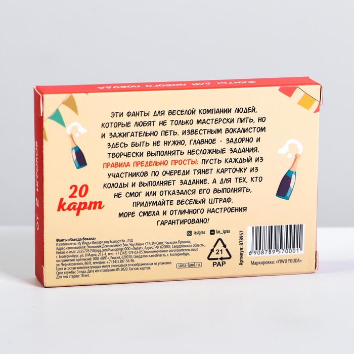 Купить игра для компании "фанты звезда бокала" 20 карт от 120 руб. с доставкой до пункта выдачи в Благовещенске. Интернет магазин ДекаМаркет. Оплата при получении.